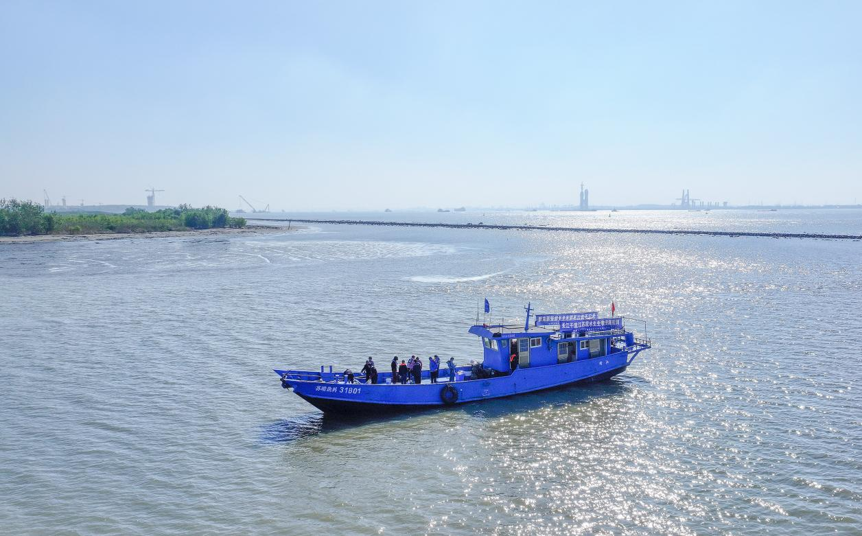 △圖為科研捕撈現場。朱其 城在江畔,江在城邊。2021年12月,長江國家文化公園建設啟動,靖江被劃為核心區(qū)。據此安排,靖江以涵養(yǎng)“百里最美江岸”統(tǒng)攬沿江生態(tài)修復和景觀提檔,相繼建成牧城生態(tài)園、大橋生態(tài)園、音樂花海廣場、東線第一帆公園、江蘇靖江濱江省級濕地公園等標志性工程,連片6.4公里、近4000畝的沿江綠色生態(tài)廊道,每年接待服務游客百萬人次以上。與此同時,靖江遵循“共抓大保護,不搞大開發(fā)”總基調,提出空間“留白”、岸線“增綠”、環(huán)境“出彩”的沿江生態(tài)保護理念,長江濕地保護率位居江蘇省前列。 生態(tài)修復,江豚逐浪成常態(tài) 不僅魚類資源越來越豐富,作為長江生態(tài)狀況“晴雨表”的江豚,今年以來頻頻現身長江靖江段,江豚調查隊和江豚保護志愿者多次捕捉到母子豚嬉戲、16頭江豚同時逐浪的珍貴鏡頭。 “長江江豚為國家一級保護動物,他們不僅是長江的‘原住民’,也是長江生態(tài)改善的見證者。”長江靖江段江豚調查隊領隊汪正飛說,調查發(fā)現,長江靖江段穩(wěn)定棲居著兩個族群約40頭長江江豚,是長江江豚分布的核心區(qū)域。以長江江豚為代表的珍稀野生動物頻繁現身,正是長江大保護的顯著成效。 實施長江流域重點水域禁捕,是推進長江大保護的重要舉措。靖江市成立長江禁捕工作專班,完善網格化監(jiān)管體系,開展打擊非法捕撈專項整治行動,落實落細十年禁漁工作。