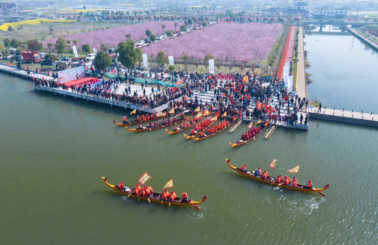 不僅如此,為更好展示推介發(fā)展木船產(chǎn)業(yè),凝聚鄉(xiāng)村發(fā)展力量,2024年4月1日,興化市竹泓鎮(zhèn)九里港“建榮杯”水上馬拉松龍舟賽擂響賽鼓,來自全鎮(zhèn)的14支龍舟隊(duì)上演“水上速度與激情”。本次龍舟賽是水上馬拉松龍舟賽活動(dòng)預(yù)演,明年起將邀請(qǐng)各參賽隊(duì)伍及廣大村民加盟,讓龍舟賽成為木船之鄉(xiāng)的文化盛宴。 |