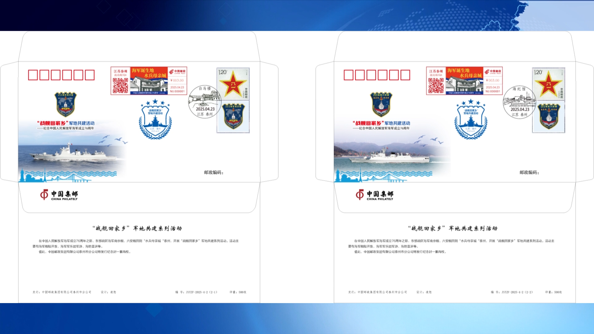 泰州:800余套“戰(zhàn)艦回家鄉(xiāng)”主題紀(jì)念郵折將贈(zèng)予來訪官兵與市民