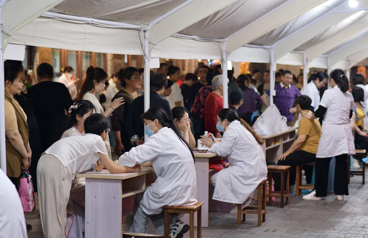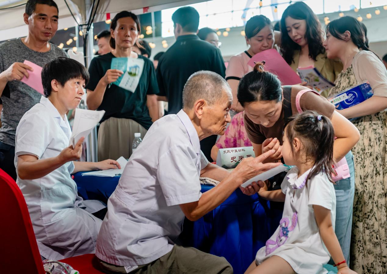 活動(dòng)現(xiàn)場(chǎng),中醫(yī)義診、中醫(yī)特色療法體驗(yàn)、中醫(yī)藥養(yǎng)生保健、傳統(tǒng)養(yǎng)生功法教學(xué)、AI大健康檢測(cè)、“藥”有詩(shī)意等多項(xiàng)活動(dòng)廣受歡迎。大家在輕松愉快的氛圍中了解中醫(yī)藥知識(shí)、感受中醫(yī)文化、體驗(yàn)中醫(yī)療法、學(xué)習(xí)節(jié)氣養(yǎng)生知識(shí),公眾健康意識(shí)得到提升。 “晚飯后和妻子出門(mén)散步,沒(méi)想到家門(mén)口有中醫(yī)夜市,就過(guò)來(lái)看看。”市民張宏民說(shuō),自己因工作原因久坐,導(dǎo)致頸椎和腰不好,醫(yī)生現(xiàn)場(chǎng)進(jìn)行了針灸,感覺(jué)好多了。“已經(jīng)約了醫(yī)生回頭去復(fù)診,這樣的夜市要多辦,方便群眾。” 80歲的史來(lái)恩老先生是中醫(yī)名家、史氏兒科療法第九代傳承人,每次夜市他的診位前群眾都排著長(zhǎng)隊(duì)。而他在夜市上開(kāi)的藥方治愈了一名孩子的皮癬頑癥,解決了困擾這家人幾年的煩惱,全家欣然給老中醫(yī)送來(lái)錦旗,一時(shí)傳為佳話。