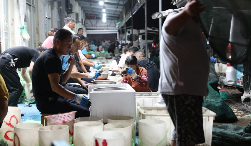 蟹香與菊香交織,美味與美景交融——這無疑是興化獨有的秋日限定浪漫。從“千垛菜花映碧水,蟹塘連片織錦繡”的產(chǎn)業(yè)盛景,再到“品蟹賞菊”的詩意升華,興化不僅構建了完整的大閘蟹產(chǎn)業(yè)鏈,更將蟹文化深深融入城市血脈。 新路徑 國慶期間,江蘇興化安豐國蟹市場熱鬧非凡。“整個市場24小時運轉,深夜都很熱鬧。”國蟹市場的經(jīng)理焦開勇說道。物流車的喇叭聲、商戶的吆喝聲、蟹筐落地的砰砰聲,交織成這片不夜城最真實的底色。 旺季期間,不少商戶干脆住進了市場。“一樓是螃蟹‘睡’,二樓才是人睡。”志偉水產(chǎn)行的老板張志偉這樣形容。他的店鋪里,“長”著滿地吐著泡泡的螃蟹。它們被分裝在12斤一個的網(wǎng)兜里,不論是否來自同一塘口,此刻都緊挨在一起。每個網(wǎng)兜上都掛著“3公3母”的標簽,意味著里邊的螃蟹都是標準的三兩體格。 工人們戴著皮手套,拎起網(wǎng)兜,將螃蟹倒入白色周轉箱過秤。“這200斤馬上發(fā)往上海,晚上就能端上客人的餐桌。”張志偉說。客戶通常提前一天下單,憑借成熟的物流網(wǎng)絡,無論新疆還是內(nèi)蒙古,全國范圍內(nèi)基本都能實現(xiàn)24小時送達。“遠的走空運,近的走陸運,我們有經(jīng)驗。” 在他手中,一只七兩重的“蟹王”正在展示何為“青殼白肚、金爪黃毛”的精品蟹特征。店外,三四名工人坐在小板凳上,正從大水箱里取出螃蟹,過秤后按體格分裝到不同的柱形圓筒中。在這里,品相和體重的細微差異,直接決定了它們的身價。