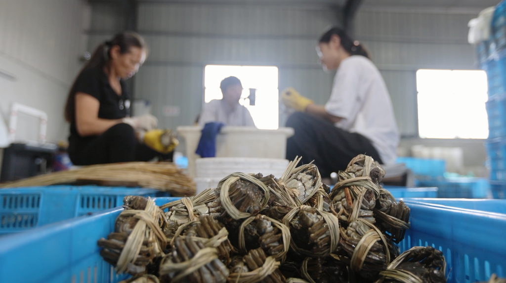 大學畢業(yè)后回鄉(xiāng)助父經(jīng)營的他,算了一筆長遠賬:過去外地客商只能擠在市場中交易,如今可以在倉儲車間直觀了解螃蟹的“生活條件”,體驗和交流環(huán)境大為改善。 更重要的是,提前分揀、蓄儲,既方便發(fā)貨、形成銷售規(guī)模,也能搶“峰”避“谷”,靈活應對市場變化,延長銷售周期,實現(xiàn)利益最大化。“傳統(tǒng)的B端和更廣的C端,我們都要顧及到。”湯友鵬正積極開拓多元銷路,不再依賴“數(shù)量為王”的傳統(tǒng)模式。他堅信,在扎實的產(chǎn)業(yè)基礎之上,個人品牌同樣能成為有價值的新IP。 從張志偉到湯友鵬,蟹商們的經(jīng)營之變,恰是興化螃蟹產(chǎn)業(yè)發(fā)展的生動縮影。他們以各自的方式,共同推動著這座“螃蟹之都”從規(guī)模制勝走向質量引領、從傳統(tǒng)集散走向品牌創(chuàng)新的新發(fā)展階段。 讓每一只螃蟹都能通過更精準的渠道、更專業(yè)的標準找到最合適的市場。興化用一只蟹的旅程,丈量著產(chǎn)業(yè)現(xiàn)代化的可持續(xù)之路。 走得更遠 大閘蟹究竟有多少種吃法?聰明的興化,圍繞這只蟹做足了文章。 除了經(jīng)典的清蒸與紅燒,候文娟向記者展示了更多可能:花雕醉蟹、香辣蟹、蟹黃醬,甚至延伸至蟹黃湯包、饅頭等面點——這里儼然一場“螃蟹千品宴”。 候文娟的創(chuàng)業(yè)故事,始終與螃蟹緊密相連。盡管未曾親手養(yǎng)蟹,她卻因熱愛吃蟹,從在家自制爆炒香辣蟹起步,做私域家廚,一步步發(fā)展成如今擁有數(shù)千平方米精加工工廠的企業(yè)“蟹逅青春電子商務有限公司”,年銷售額高達8000萬元。 她成功的核心,在于持續(xù)創(chuàng)新。當市場上還在力推香辣蟹時,她敏銳捕捉到年輕消費者對健康、潔凈配料的需求,嘗試將蟹黃與傳統(tǒng)面點結合。今年,僅蟹黃面點這一個單品,銷售額突破150萬元。 興化一直在思考一個重要的議題,那就是大閘蟹產(chǎn)業(yè)如何走向更遠更深。品牌化無疑是破局的核心。 長久以來,興化大閘蟹總是免不了要被拉出來和其他地區(qū)的大閘蟹進行比較。相比其他名聲在外的大閘蟹品牌,興化大閘蟹的名氣與其江湖地位并不匹配。