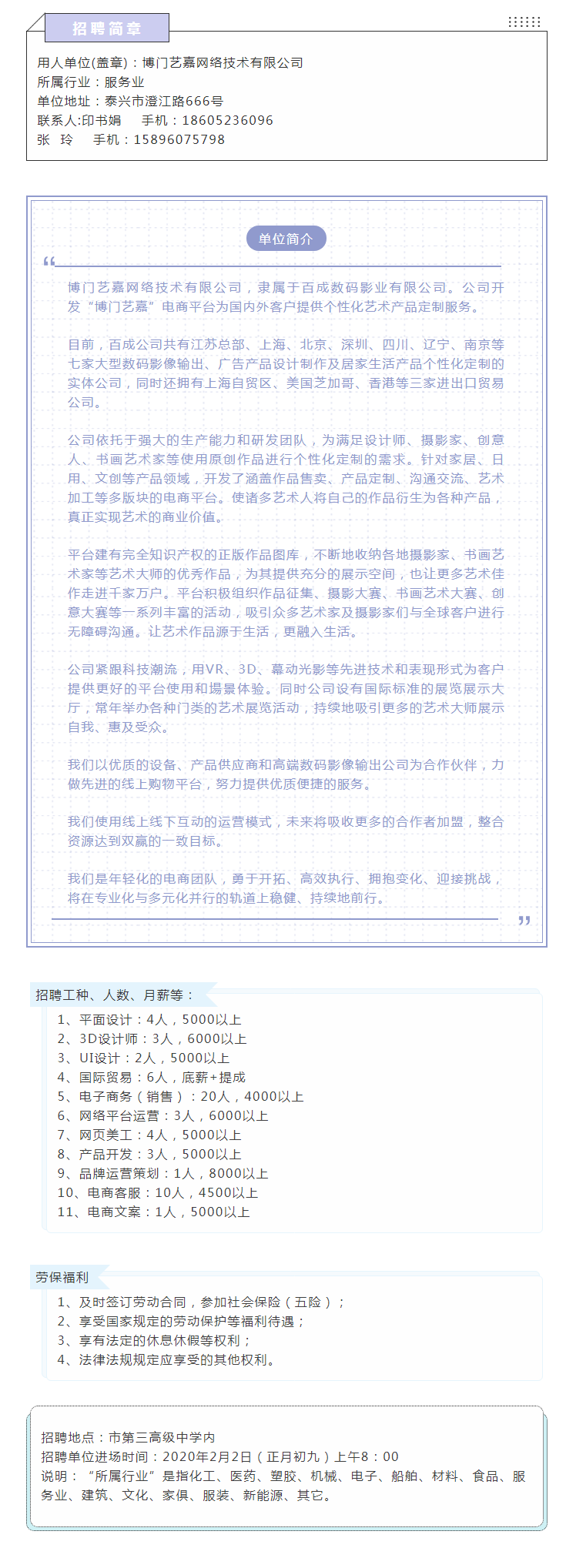 博門藝嘉網(wǎng)絡技術有限公司招聘簡章