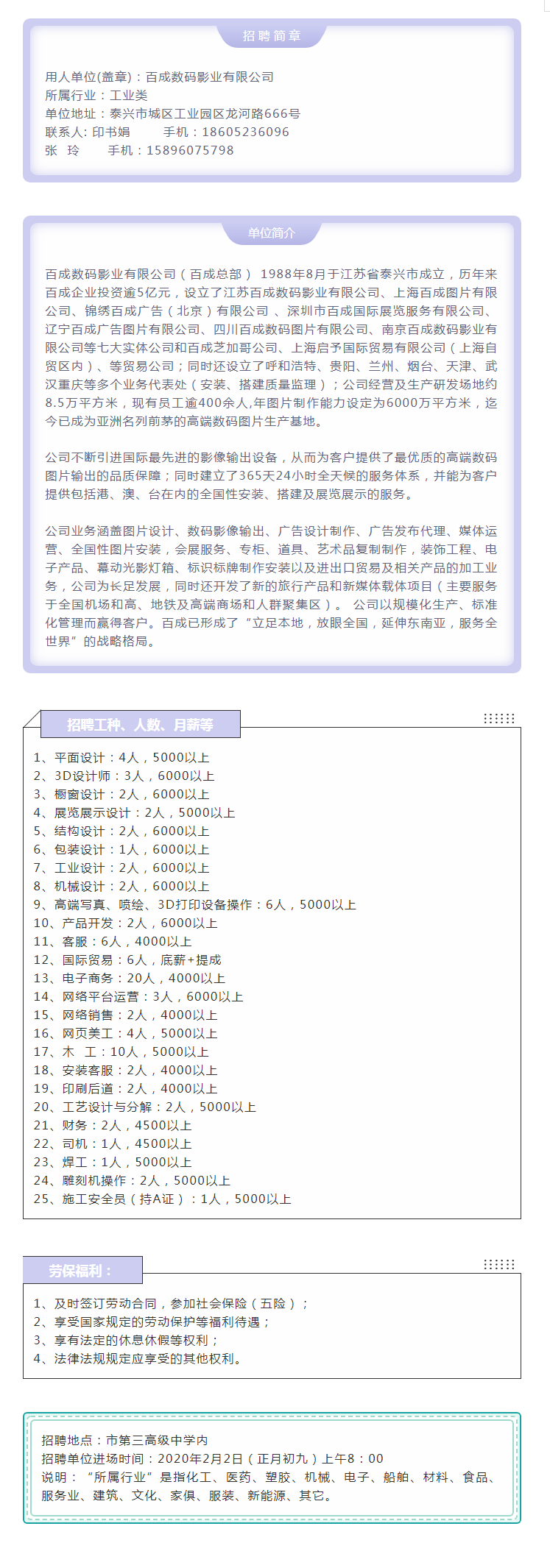 百成數(shù)碼、博門藝嘉2020年新春大型招聘會暨人才交流洽談會