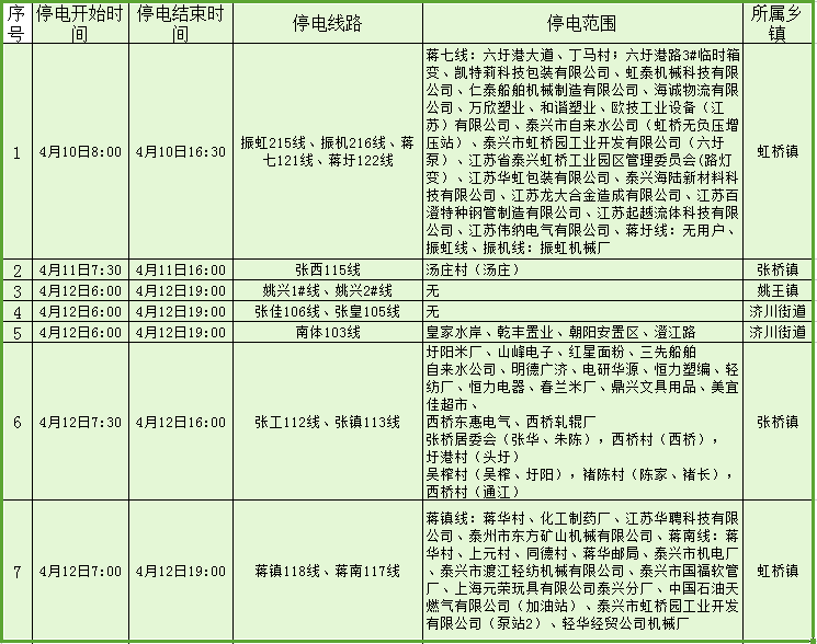 注:以上停電遇雨順延,詳情請洽客服熱線87622222