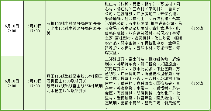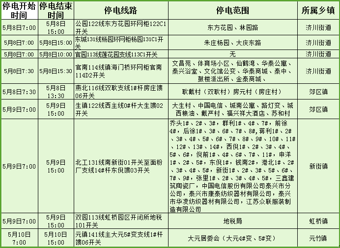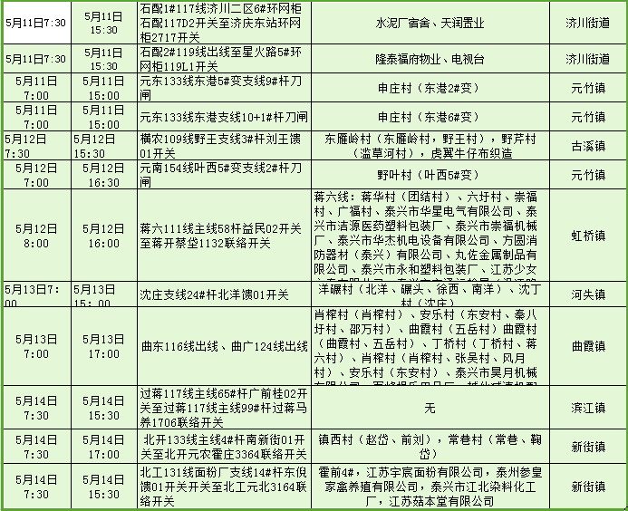 停電公告(5月8日-5月14日)
