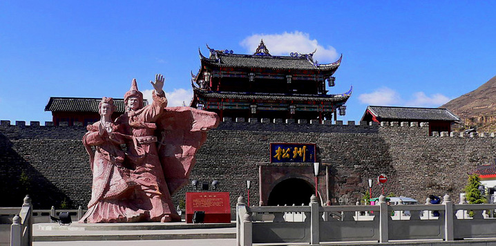 扎嘎瀑布地處海拔3270米,是一座多層的疊瀑,疊疊多變。瀑布高104米,寬35米,為中國(guó)最高的鈣化瀑布。其上游是湖泊,下游為一串階梯式河床。上百個(gè)層層疊疊的鈣華環(huán)型瀑布玉串珠連,經(jīng)三級(jí)鈣華臺(tái)階跌宕而下,以每秒23米的速度跌落,氣勢(shì)磅薄,濤聲十里。沖擊成巨大鈣華面而形成朵朵巨大白花,瀑聲如雷,聲形兼?zhèn)洹?/p> 5、前往游覽大唐松州古城(行程特色贈(zèng)送,游覽時(shí)間約30分)