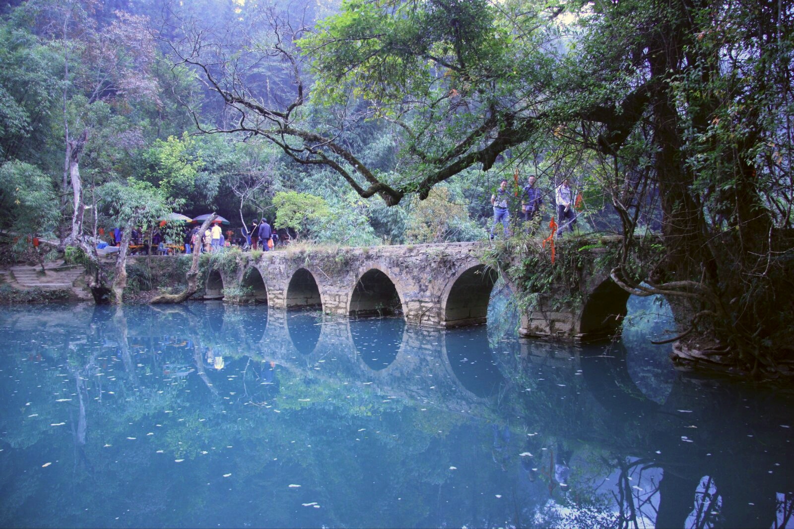 早餐后乘車前往荔波(車程約4小時)游覽地球同一緯度絕無僅有的巖溶地貌的【小七孔景區(qū)】(含電瓶車,游覽2.5H,含保險):68級響水瀑布-拉雅瀑布-鴛鴦湖(可選擇自行劃船30元/人)-水上森林:小七孔風景區(qū)以精巧、秀美、古樸、幽靜著稱,景區(qū)移步換景,布局緊湊。有著名的七孔古橋、68級響水河瀑布、拉雅瀑布、龜背山原始森林等景點,更有掩映在森林之中的鴛鴦湖。鴛鴦湖秒大小兩個天然湖泊相連而成,大小湖這間有長約700米的“水上林蔭”,兩岸秀木枝蔓成棚。湖區(qū)濃蔭四匝,水鳥相呼,境界幽絕,置身其間,有如仙境;游畢返回并下榻在荔波縣城。