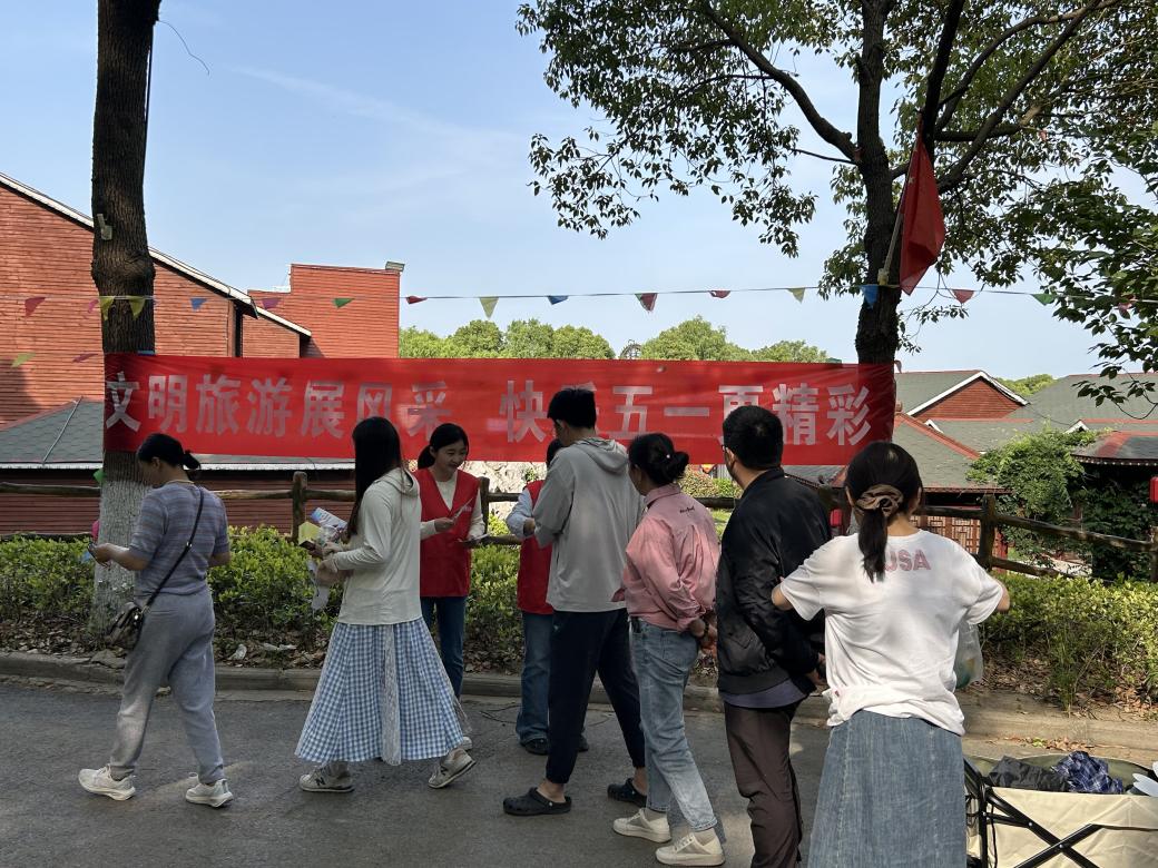 為營(yíng)造文明和諧的假日旅游氛圍,提升游客出行體驗(yàn),泰興市文體廣電和旅游局在五一假期期間,統(tǒng)籌全市重點(diǎn)景區(qū),發(fā)起“文明相伴·暢游泰興”主題宣傳活動(dòng)。通過各景區(qū)志愿者引導(dǎo)、互動(dòng)宣教、柔性管理等方式,倡導(dǎo)游客踐行文明公約,共同守護(hù)景區(qū)環(huán)境,讓“詩(shī)與遠(yuǎn)方”與文明同行。 1.志愿者進(jìn)景區(qū)宣傳文明旅游 各景區(qū)入口設(shè)置了文明旅游宣傳展板,循環(huán)播放文明倡議短片,志愿者向游客發(fā)放《文明旅游宣傳手冊(cè)》及環(huán)保袋,結(jié)合趣味問答贈(zèng)送定制文創(chuàng)小禮品,吸引游客主動(dòng)學(xué)習(xí)文明規(guī)范。