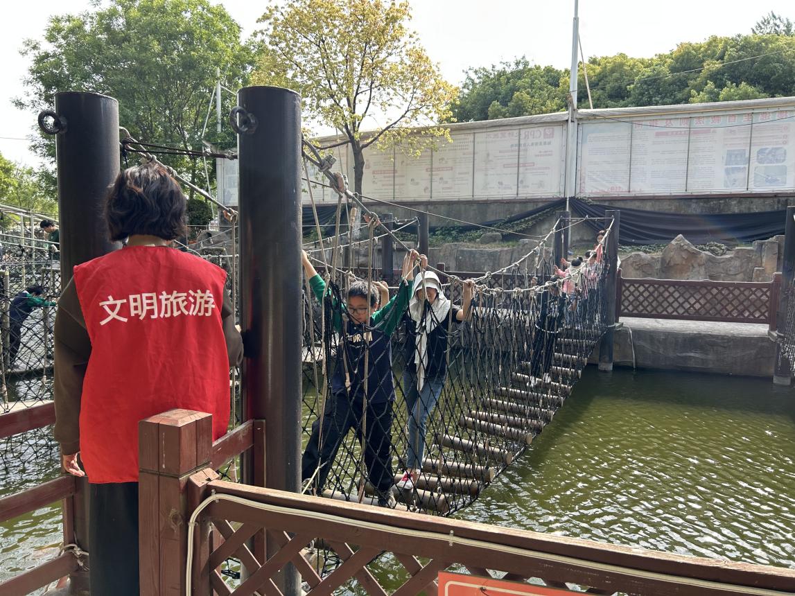 2.志愿者暖心服務(wù),共建有序環(huán)境 “您好,景區(qū)內(nèi)請(qǐng)勿攀折花木,感謝您的配合!”“小朋友們,水邊危險(xiǎn),請(qǐng)有序排隊(duì)游玩”。活動(dòng)中,志愿者身著統(tǒng)一紅馬甲,分組在景區(qū)入口、兒童游樂區(qū)等人流密集處開展文明勸導(dǎo)。志愿者化身“文明守護(hù)員”,對(duì)攀爬文物、刻劃樹木、踐踏花草等不文明行為及時(shí)勸阻。倡議廣大游客朋友樹立文明旅游意識(shí),遵守文明行為規(guī)范,樹立文明、健康、綠色旅游新風(fēng)尚。