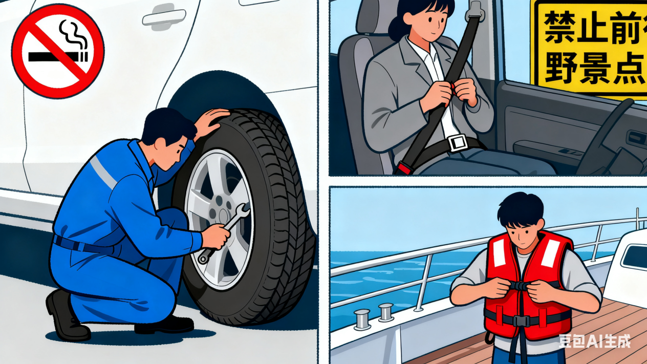 安全筑防線:自駕游前全面檢查車況,杜絕疲勞、酒后駕駛。乘坐交通工具時(shí)全程系好安全帶,乘坐游船需按規(guī)定穿救生衣。不前往未開發(fā)、缺乏安全保障的“野景點(diǎn)”,慎選高風(fēng)險(xiǎn)項(xiàng)目,注意安全用火。