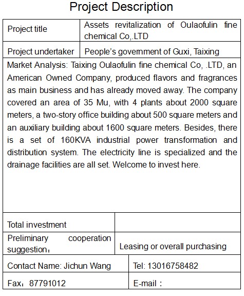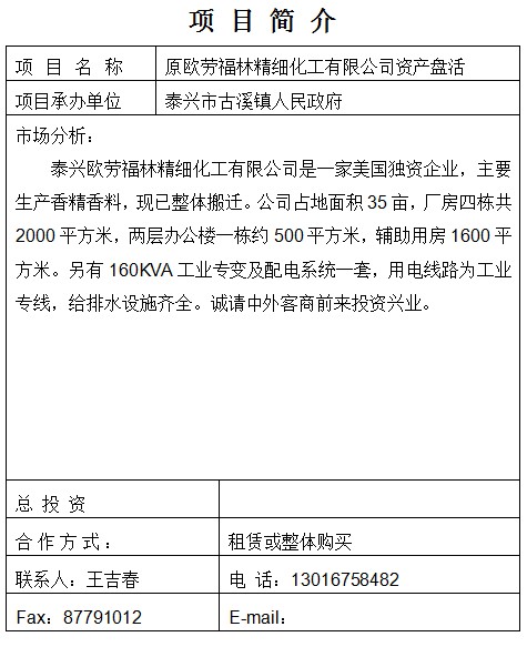 原歐勞福林精細化工有限公司資產(chǎn)盤活