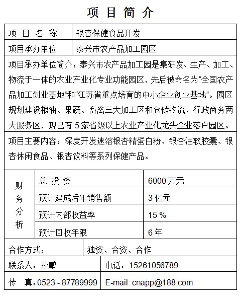 銀杏保健食品開(kāi)發(fā)