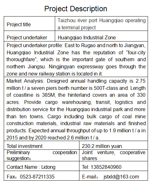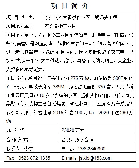 泰州內河港黃橋作業(yè)區(qū)一期碼頭工程