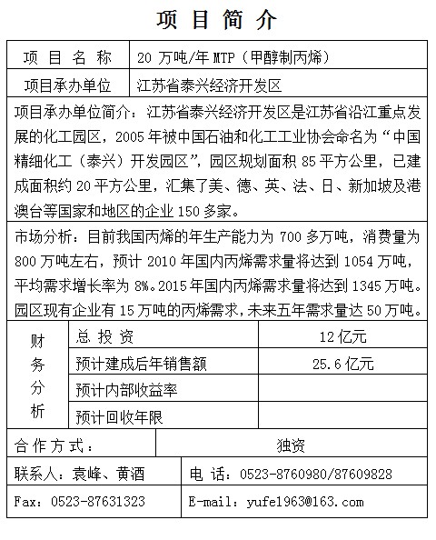 20 萬噸/年MTP(甲醇制丙烯)