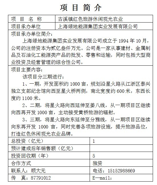 古溪鎮(zhèn)紅色旅游休閑觀光農(nóng)業(yè)