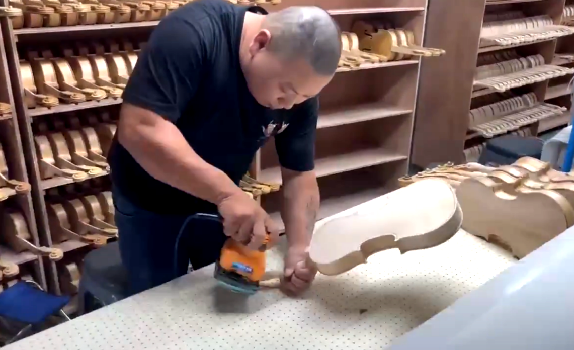 人民參與特色產(chǎn)業(yè)發(fā)展,發(fā)展成果由人民共享。今年“6.21國際樂器演奏日”活動后,鳳靈樂器有限公司各大車間有點忙。在裝頭車間,今年46歲的向春美,熟練地用刀削切琴身頂端的凹槽,并不停地將琴頭按上進行比對,確保琴頭的榫頭與凹槽完全吻合。她一天能裝100到150只琴頭,每月收入3000元到4000元。“提琴制作有120道工序,去年生產(chǎn)大、小琴近20萬把。今年的訂單來不及做,我們正加班加點。”鳳靈樂器有限公司行政部長何永承介紹。