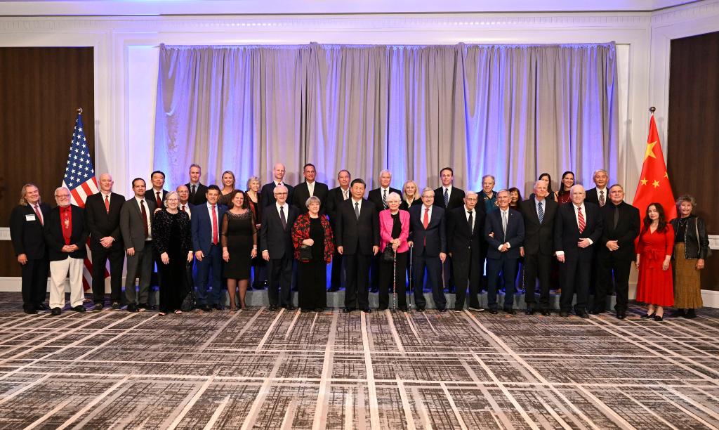 當(dāng)?shù)貢r間11月15日晚,國家主席習(xí)近平在美國舊金山出席美國友好團(tuán)體聯(lián)合舉行的歡迎宴會。這是宴會開始前,習(xí)近平會見飛虎隊和史迪威將軍后人、鼓嶺、艾奧瓦州、華盛頓州等方面友好人士代表,同他們親切交談并合影留念。 “我第一次訪問美國時,住在艾奧瓦州的德沃切克夫婦家中,我還記得門牌號是邦尼街2911號。”溫情講述令人動容。在場人士對習(xí)近平主席熱情洋溢的演講報以近二十次熱烈掌聲。 “越是困難的時候,越需要拉緊人民的紐帶、增進(jìn)人心的溝通,越需要更多的人站出來為中美關(guān)系鼓與呼。”習(xí)近平主席指出。 “習(xí)近平主席,歡迎您再來金伯利農(nóng)場做客,再來開拖拉機”“您提到讓大熊貓重返加州的事,我們愿意提供飛機把熊貓再接過來”“您講的話打動現(xiàn)場每一個人”……美方人士熱情回應(yīng),表示將繼續(xù)傳承和發(fā)展好美中友誼。 太平洋足夠大,容得下百舸爭流;地球足夠大,容得下中美各自和共同發(fā)展。 在兩國元首領(lǐng)航把舵下,中美關(guān)系這艘巨輪穿越暗礁險灘,從巴厘島抵達(dá)舊金山,殊為不易。但舊金山不是終點,而應(yīng)該成為新的起點。 。ㄈ⿹(dān)當(dāng):“下一個‘中國’,還是中國” 11月16日,中國代表團(tuán)駐地來賓絡(luò)繹不絕,成為多邊國際會議期間中國雙邊外交“主場”。 在密集緊湊的日程中,習(xí)近平主席專門安排時間,同出席本次亞太經(jīng)合組織領(lǐng)導(dǎo)人非正式會議相關(guān)活動的多位外國領(lǐng)導(dǎo)人舉行雙邊會見。 有的來自與中國相距萬里的拉美—— “在談及其他話題之前,我首先借此機會向您表示感謝。”首次同習(xí)近平主席會面,墨西哥總統(tǒng)洛佩斯講起一段往事。