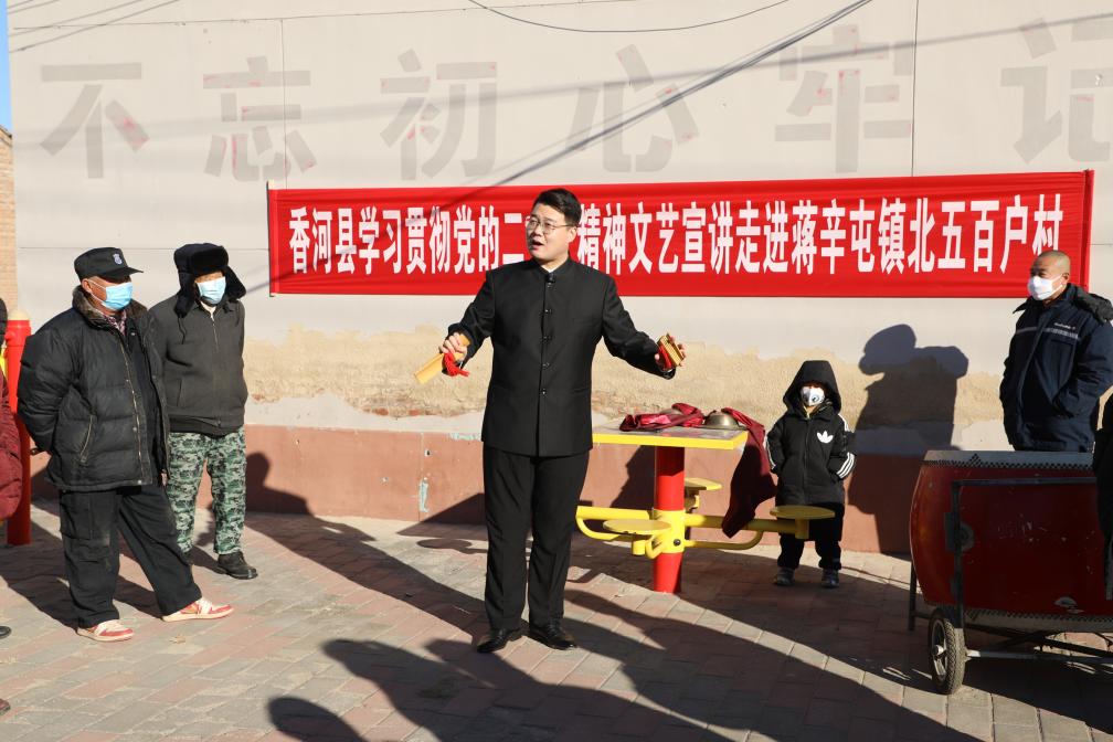 河北省香河縣文化館的文藝工作者張?chǎng)毋懺谙愫涌h蔣辛屯鎮(zhèn)北五百戶村進(jìn)行黨的二十大精神“快板宣講”(2022年12月13日攝)。新華社發(fā) 轉(zhuǎn)作風(fēng),樹(shù)新風(fēng)—— “新聞?shì)浾摴ぷ髡咭D(zhuǎn)作風(fēng)改文風(fēng),俯下身、沉下心,察實(shí)情、說(shuō)實(shí)話、動(dòng)真情,努力推出有思想、有溫度、有品質(zhì)的作品。”習(xí)近平總書(shū)記諄諄告誡。 作風(fēng)問(wèn)題本質(zhì)上是黨性問(wèn)題。堅(jiān)持和加強(qiáng)黨的文化領(lǐng)導(dǎo)權(quán),必須持之以恒轉(zhuǎn)作風(fēng)、改文風(fēng),力戒形式主義、官僚主義,將黨中央決策部署落到實(shí)處。 新時(shí)代新征程上,堅(jiān)持以習(xí)近平新時(shí)代中國(guó)特色社會(huì)主義思想為指導(dǎo),深入學(xué)習(xí)貫徹習(xí)近平文化思想,宣傳思想文化戰(zhàn)線擔(dān)責(zé)于肩、履責(zé)于行,必將為從思想上、精神上、文化上堅(jiān)持黨的執(zhí)政地位、夯實(shí)黨的執(zhí)政基礎(chǔ)作出更大貢獻(xiàn)。(記者丁小溪、范思翔、王明玉、馮家順) |