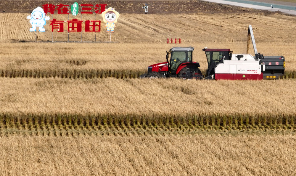 2024年5月9日,在福建省安溪縣西坪鎮(zhèn)珠洋村,科技特派員(中)在指導(dǎo)茶農(nóng)使用機(jī)器科學(xué)化采收茶葉。新華社記者 魏培全 攝 “把你的貢獻(xiàn)就寫在大地上!”總書記叮囑,“我在福建時(shí)就抓科技特派員,現(xiàn)在全國都在推廣。農(nóng)業(yè)技術(shù)人員就是要下沉到農(nóng)村基層來,就是去干具體的出實(shí)際成果的事情,這就是你們的貢獻(xiàn)。” 如今,數(shù)十萬“科特派”活躍在田野一線,給農(nóng)業(yè)插上科技的翅膀。 東北,祖國的大糧倉,見證中國農(nóng)業(yè)的發(fā)展。 2018年9月,第一個(gè)中國農(nóng)民豐收節(jié)剛過,習(xí)近平總書記從北京飛抵東北,來到黑龍江農(nóng)墾建三江管理局,走進(jìn)大田,察看秋收。 龍江大地,金風(fēng)送爽,稻浪滾滾。建三江七星農(nóng)場萬畝大地號豐收在望,10臺收割機(jī)一字排開,正在實(shí)施聯(lián)合作業(yè)。
