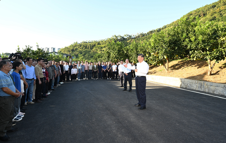11月7日至8日,中共中央總書記、國家主席、中央軍委主席習近平在廣東考察。這是7日下午,習近平在梅州市梅縣區(qū)雁洋鎮(zhèn)南福金柚種植基地考察。新華社發(fā)(肖翊 攝)