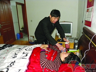 “我想他應(yīng)該知道,不管他走多遠(yuǎn),都走不出我的心里,他已經(jīng)成了我的影子了。”這是一名高位截癱的女子,近日發(fā)在博客上的文章,文中的“他”是她的丈夫。 18年前,年僅19歲的泰興女孩郭雅鳳,在一場(chǎng)車禍中意外受重傷,造成高位截癱,脖子向下都沒有了知覺。在一次電臺(tái)連線中,安徽小伙子馮學(xué)田知道了她的故事,并輾轉(zhuǎn)聯(lián)系上了她。兩人開始了一段感人、坎坷的戀情。 如今,他們的激情還在嗎?記者走近了這對(duì)夫妻—— 記者眼中的這對(duì)夫妻 他服侍她躺在床上刷牙 昨天上午,在泰興市張橋鎮(zhèn)郭橋村一座三間瓦房?jī)?nèi),記者見到了馮學(xué)田、郭雅鳳這對(duì)患難夫妻。 前晚在單位值夜班的馮學(xué)田,下班剛到家不久。東廂房?jī)?nèi),馮學(xué)田正伺候著躺著床上的郭雅鳳刷牙。擠上牙膏后,馮學(xué)田將牙刷遞給郭雅鳳,郭雅鳳用兩只手的手腕將牙刷柄死死夾住,伸進(jìn)嘴內(nèi)。由于手指不聽使喚,郭雅鳳只能靠頭部的左右上下擺動(dòng),完成牙刷和牙齒之間的“相對(duì)運(yùn)動(dòng)”。此時(shí),馮學(xué)田雙手各端一只水杯,一只是空的,另一只里面有水,水中插著一支吸管,站在一旁。牙刷好后,郭雅鳳通過有水杯內(nèi)的吸管,將水吸進(jìn)嘴中,然后再將漱口水吐進(jìn)另一只空杯內(nèi),整個(gè)動(dòng)作非常嫻熟。 一個(gè)高位截癱的女孩,一個(gè)健康的男孩,他愛上了她,他要娶她。很多的反對(duì),很多的不解—— 愛,曾被懷疑是“沖動(dòng)” 當(dāng)年的她 意外車禍成高位截癱 用嘴“寫字”成電臺(tái)明星 1993年秋天的那場(chǎng)車禍,徹底改變了郭雅鳳的人生軌跡。 郭雅鳳回憶說,那年她19歲,初中畢業(yè)后在蘇州絲織廠打工。一天,在下班途中被一輛車撞倒,后腦勺重重硌在石塊上,當(dāng)即昏迷。肇事車逃逸,是一名好心的過路人,用板車將她送到醫(yī)院。醒來時(shí),她的頸椎第二至第七關(guān)節(jié)粉碎性骨折,鎖骨以下完全失去了知覺,從此全身癱瘓,大小便失禁。她成了高位截癱。萬念俱灰的她,曾自殺過三次,都被家人救下。 1998年,郭雅鳳在嫂子的幫助下,開始練習(xí)“寫”字。一次次失敗后,她終于找到了“ 竅門”,最終“寫”出了不錯(cuò)的楷體字。 在嫂子的鼓勵(lì)下,她開始給早已熟悉的無錫交通臺(tái)投稿,并致電給電臺(tái)熱線,通過電波說自己的故事。她家電話公開后,很多聽眾還給她打來問候的電話,一時(shí)她成了電臺(tái)的明星。 當(dāng)年的他 安徽小伙主動(dòng)上門 最終卻被準(zhǔn)岳母“罵走” 2000年,在無錫打工的安徽六安小伙馮學(xué)田,出于好奇通過電臺(tái)聯(lián)系上郭雅鳳。 在電話里,馮學(xué)田表達(dá)了想上門見見郭雅鳳的愿望,被郭雅鳳一口拒絕。誰(shuí)知,沒過多久,郭雅鳳就接到了馮學(xué)田的電話,馮學(xué)田說他已到郭雅鳳所在村的村頭,郭雅鳳只好讓他進(jìn)門。 初次見面,兩人談了很多。郭雅鳳得知,馮學(xué)田同樣“命苦”,6歲母親就去世,20歲父親去世,家中弟兄多,經(jīng)濟(jì)困難,他不得不常年在外打工。而郭雅鳳的樂觀開朗,在馮學(xué)田心里“種下了蠱”。 2001年春節(jié),郭雅鳳父親患重病住進(jìn)南通一家大醫(yī)院。馮學(xué)田得知消息后,主動(dòng)趕了過來。在南通醫(yī)院,馮學(xué)田像伺候親生父親一樣,照顧著郭雅鳳的父親。一個(gè)月以后,郭雅鳳父親去世,馮學(xué)田忙前忙后幫著料理完后事。 然而,父親去世后,郭雅鳳的母親卻不同意馮學(xué)田留在家中,強(qiáng)行將其趕走。說起母親當(dāng)初的反對(duì),郭雅鳳回憶,母親當(dāng)時(shí)認(rèn)為馮學(xué)田不是真心對(duì)她好,可能另有所圖。 轟動(dòng)一時(shí)的婚禮 電視臺(tái)做媒 在南京舉辦了婚禮 馮學(xué)田臨走前,對(duì)郭雅鳳說:“我出去掙錢,一年后來接你走。”然而,馮學(xué)田走后兩個(gè)月都沒有找到工作,其間沒有和郭雅鳳聯(lián)系,連封信也沒有。村里人說,馮學(xué)田恐怕再也不會(huì)回來了。第三個(gè)月,馮學(xué)田在丹陽(yáng)其親戚的磚廠里找到了工作,給郭雅鳳來信。任憑馮學(xué)田聲淚俱下,不敢接受對(duì)方“愛”的郭雅鳳,仍然拒絕了他。 “我是一名高位截癱的患者,能不能接受別人的愛?”馮學(xué)田返回丹陽(yáng)后,左右為難的郭雅鳳給省電視臺(tái)寫信說出了她的糾結(jié)。幾天后,省電視臺(tái)工作人員找到了她的家,詳細(xì)了解情況后,又找到了馮學(xué)田,說服郭雅鳳的母親后,最終撮合了他倆。 2002年11月16日,馮學(xué)田、郭雅鳳在省電視臺(tái)著名主持人的主持下,在南京舉辦了一場(chǎng)特殊的婚禮。讓他們意外的是,最初給他倆牽線搭橋的無錫交通臺(tái)的主持人“北燕”,也趕到了現(xiàn)場(chǎng)。 婚后,他倆在城里開了一間小賣部。 不可能有孩子,不可能有夫唱婦隨,她一直躺在床上,無法給他一個(gè)正常的家。于是,她不想拖累他?墒,他讓她、也讓所有人懂得了—— 婚姻,是責(zé)任與堅(jiān)守 兩次懷孕兩次流產(chǎn) 了愛她離家出走 知道丈夫很喜歡孩子,郭雅鳳就想為他生一個(gè)?舍t(yī)生稱她的身體不適合做母親,懷孕有可能導(dǎo)致生命危險(xiǎn)。郭雅鳳怕丈夫?yàn)樗龘?dān)心,就偷偷地停用了避孕藥。 2003上半年,她果真懷孕了!但馮學(xué)田沒有驚