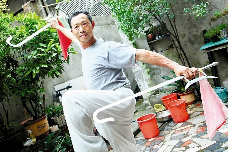 ①瞧這把式,可不是花拳繡腿。 ②這些年,李明福帶了不少徒弟,他現(xiàn)在還是社會體育輔導(dǎo)員。 ③李明福的 “兵器庫”,這些健身器材大部分是李明福自己動手制作的。 ④李明福自己打造的燕子鏢。 9日上午,家住泰興市黃橋鎮(zhèn)區(qū)的李明福來到泰州體育館,參加由江蘇省武術(shù)運動協(xié)會舉辦的武術(shù)比賽。 李明福的比賽在下午。中午休息時,他拿出雙劍活動一下筋骨,沒想到一個套路舞下來后,周圍站滿了同行,“你舞得太好了,讓我們怎么上臺?” 當(dāng)天下午,李明福參加了兩個項目,一是男子老年A級劍術(shù);二是男子老年A級雙刀。兩個項目均以最高分奪魁。 李明福今年61歲,習(xí)武已有46年。 少年時,遇到一個姓何的老頭,手拿一把銹跡斑斑的單刀,舞得虎虎生風(fēng)。李明福佩服得五體投地,拜何老頭為師。 師傅教刀槍劍鉤,可當(dāng)時又買不到,李明福就向師傅討來圖紙,利用在工廠上班的機(jī)會做。他先請鐵匠打出坯子,然后拿到車間去打磨,再安上劍把和刀把。 日出日落,春秋冬夏,李明福堅持每天練武,單刀、雙刀,單劍、雙劍,長槍,雙鉤……李明福越練越健康,1.68米的身高,體重140斤,渾身上下沒有贅肉,說話嗓音洪亮,走路步履輕巧。 朋友紛紛上門拜師,有的還帶著孩子一起來學(xué)。李明福來者不拒,名聲越來越響,不少工廠都請他上門,教職工們習(xí)武健身。 一些想報考武術(shù)專業(yè)的高考學(xué)生,聽說李明福后紛紛登門拜師。為了讓孩子們在最短的時間里學(xué)會幾個武術(shù)套路,李明福不分早晚地教。每天傍晚,老伴都要蒸二十幾個饅頭送給徒弟們吃。目前,已經(jīng)有十幾個徒弟考上了心儀的高校。 教人習(xí)武健身,李明福分文不收,甚至還倒貼錢為徒弟買刀劍家伙,購置運動服。為了以武會友,李明福多次舉辦武術(shù)交流活動,邀請周邊縣市的武術(shù)愛好者參加,每次都要貼上四五千塊錢。“心要寬,體要松。”李明福說,因為崇拜俠客,他愛上了武術(shù);為了強身健體,他堅持每天習(xí)武。武術(shù)不但給了他健康的體魄,還給了他快樂。 記者 姚翔/文 張慶龍/圖 |