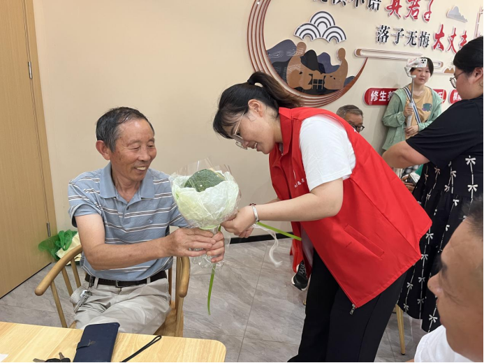鵲橋架南北,佳期又一年。為弘揚(yáng)中華民族敬老、愛老、助老的傳統(tǒng)美德,虹德社區(qū)聯(lián)合工青婦力量組織黨員者愿者舉辦“銀發(fā)相守 愛在七夕”主題活動(dòng),特邀請(qǐng)15對(duì)60歲以上老年夫妻歡聚一堂,共同慶祝這最浪漫的傳統(tǒng)節(jié)日。 走進(jìn)虹德社區(qū)一老一小關(guān)愛服務(wù)中心的老年活動(dòng)室,現(xiàn)場(chǎng)溫馨融洽、笑語不斷,巾幗志愿者將準(zhǔn)備好的西蘭花、彩帶、剪刀等材料分發(fā)給大家,從材料剪裁以及造型搭配方面?zhèn)魇诎b技巧。“我們這次特意選用西蘭花來包裝成花束,讓轄區(qū)老人體會(huì)煙火人間的平凡浪漫,讓愛意在柴米油鹽中永存,讓奶奶的碎碎念念陪伴爺爺?shù)臍q歲年年。”志愿者小金說。 鮮花為媒,綠葉為信。在完成了西蘭花花束后,每對(duì)夫婦來到打卡處拍下幸福合影,爺爺將鮮花送給老伴,表達(dá)自己最深情的愛與祝福。“結(jié)婚這么多年,還從來沒收過花,特別感謝你們的用心,讓我們感受到從未有過的浪漫!”“從來沒想過,這輩子還會(huì)趕一次‘時(shí)髦’,過了一次難忘的七夕節(jié)……”此次活動(dòng)贏得了轄區(qū)老人的一致好評(píng)。 陪伴是最長情的告白,相守是最真實(shí)的幸福。浪漫不只是年輕人的事,本次活動(dòng)不僅展示了他們風(fēng)風(fēng)雨雨幾十年相濡以沫、攜手相伴的人生風(fēng)采,同時(shí)也營造出虹德社區(qū)關(guān)愛老人、夫妻恩愛、家庭和睦的良好氛圍。 |