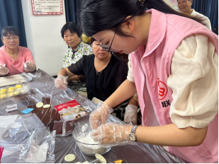 在丹桂飄香的季節(jié)里,中秋佳節(jié)的腳步漸漸臨近。為了讓轄區(qū)內(nèi)的老年人度過(guò)一個(gè)歡樂(lè)、溫馨的節(jié)日,濱江鎮(zhèn)民政服務(wù)站圍繞“夕福童享 愛(ài)潤(rùn)濱江”品牌活動(dòng),聯(lián)合殷石村開(kāi)展“花好月圓 情滿中秋”主題活動(dòng)。 活動(dòng)伊始,舞臺(tái)上,阿姨們身著華麗的戲服,以生動(dòng)的表演、悠揚(yáng)的唱腔一一呈現(xiàn)《英雄贊歌》、《百善孝為先》、《趕大車》等,讓在場(chǎng)的每一位觀眾都沉浸其中,F(xiàn)場(chǎng)歡聲笑語(yǔ)不斷,手機(jī)快門(mén)聲也此起彼伏,共同記錄這一個(gè)個(gè)難忘的瞬間,殷石村也貼心地為失獨(dú)老人、困難老人、孤寡老人等送上了米和油。 隨后,工作人員為大家有序分發(fā)月餅制作材料,講解冰皮月餅的制作方法。大家紛紛化身月餅師傅,和面、搓面團(tuán)、壓餅皮、包餡料、壓成型,大家分工明確,相互配合,經(jīng)過(guò)一個(gè)半小時(shí)的制作,桌子上的原材料變成了漂亮的冰皮月餅,整個(gè)制作過(guò)程中大家相互交流,相互借鑒,相互夸獎(jiǎng),現(xiàn)場(chǎng)一片祥和。月餅制作完成后,老人們開(kāi)心地展示著自己的勞動(dòng)成果,品嘗著自己制作的月餅,樂(lè)在臉上,甜在嘴里,暖在心間。 本次活動(dòng)的開(kāi)展促進(jìn)了鄰里之間的溝通與理解,也展現(xiàn)了和諧、友愛(ài)、互助的良好風(fēng)貌。未來(lái),濱江鎮(zhèn)民政服務(wù)站將繼續(xù)秉承“夕福同享 愛(ài)潤(rùn)濱江”的理念,舉辦更多豐富多彩的活動(dòng),為老人們營(yíng)造一個(gè)更加和諧美好的生活環(huán)境。 |