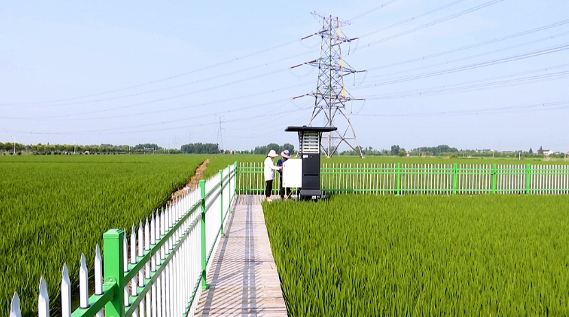 目前,泰興市60萬畝水稻已大面積進入抽穗揚花期。同時,南方遷飛的稻縱卷葉螟蟲害對水稻抽穗揚花存在不利影響。為此,泰興市啟用智能測控系統(tǒng),全天候監(jiān)測農作物生長情況,實時顯示稻田各類數(shù)據(jù)。農技專家通過對這些數(shù)據(jù)的監(jiān)測分析,科學制定田間管理措施。