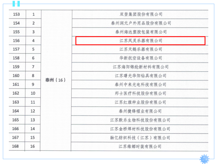 近日,江蘇省商務(wù)廳公布了第二批內(nèi)外貿(mào)一體化試點(diǎn)企業(yè)名單,其中,泰興市江蘇鳳靈樂(lè)器有限公司上榜。