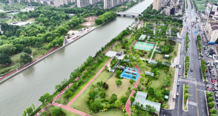 在“雙水潤(rùn)城”觀景平臺(tái),河水清澈、綠意盎然、生機(jī)勃勃。工程在建設(shè)階段就嚴(yán)格環(huán)保標(biāo)準(zhǔn),從運(yùn)營(yíng)階段的持續(xù)水質(zhì)監(jiān)測(cè)與生態(tài)保護(hù),到增加產(chǎn)清控制系統(tǒng),無一不是精心謀劃。項(xiàng)目充分利用運(yùn)河資源,打造了一系列親水空間,在方便市民休閑娛樂的同時(shí),促進(jìn)人與自然和諧共生。