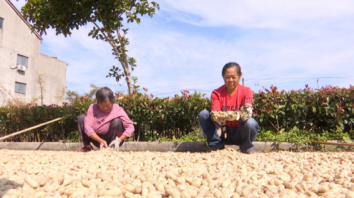 10月18日,在泰興市分界鎮(zhèn)長生社區(qū),村民丁和芳正與鄰居一起曬花生。村里協(xié)調(diào)出閑置莊臺,讓村民們能夠及時翻曬。“今年花生的產(chǎn)量高,很飽滿,正好打點花生油給孩子們,多的再賣。”丁和芳高興地說。