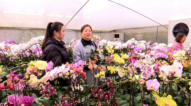 2024年12月21日上午,泰興市河失鎮(zhèn)綠地苗木市場的蘭泰花卉種植基地內(nèi),蝴蝶蘭生長旺盛,姿態(tài)優(yōu)雅。盛開的花朵宛如翩翩起舞的蝴蝶,在枝頭嬉戲。市民郭嬌艷是這里的?,她表示:“我們經(jīng)常來這里選購蝴蝶蘭,擺放在家中既美觀又有觀賞價(jià)值,作為禮物送給親朋好友也非常合適。” 蝴蝶蘭因其花瓣酷似停留在花莖上的藍(lán)色蝴蝶而得名,被譽(yù)為“洋蘭皇后”。隨著品種的雜交和演變,蝴蝶蘭的色彩變得更加豐富,紅、紫、藍(lán)、黃等色彩斑斕。目前蝴蝶蘭的品種已超過600種,滿足了消費(fèi)者多樣化的家居種植需求;ㄋ噹煆埢劢榻B:“我手中的這盆花名為‘光芒’,因其花瓣如光芒般四射而得名。扦插時(shí),由于花頭會延伸得很長,需要用鐵絲支撐,以起到襯托的作用。裝盆時(shí),花朵平面朝向我們,以保持美觀。”