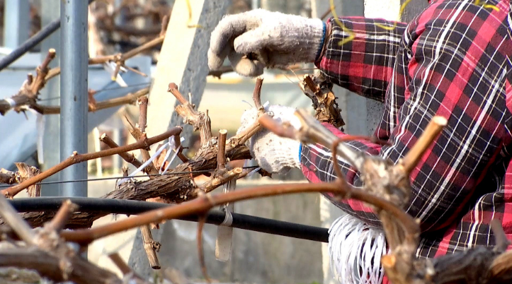 近日,在泰興市清揚生態(tài)果園葡萄基地,務(wù)工人員正熱火朝天地修剪葡萄樹。該果園葡萄種植面積超八十畝,修剪工作已持續(xù)一周。