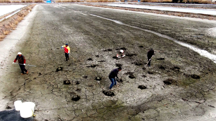 與此同時,位于根思鄉(xiāng)老葉村的正濤螃蟹養(yǎng)殖專業(yè)合作社也忙得不可開交。合作社理事長許正濤說,養(yǎng)殖一年后,年底要放干水,曬塘消毒氧化,“曬到塘底裂縫達兩公分寬時,進行消毒。消毒是用石灰化水潑澆,讓池塘酸堿度達十一點幾,殺掉底部病原體和蟲卵。”兩個多月的“凈身”能讓蟹塘煥發(fā)新生。此外,水草也已進入蟹塘栽植,“養(yǎng)螃蟹全靠水草,一塘好水,一塘好草,養(yǎng)一塘好蟹。消毒、栽草做好后,就等過年放蟹了。”許正濤躊躇滿志。
