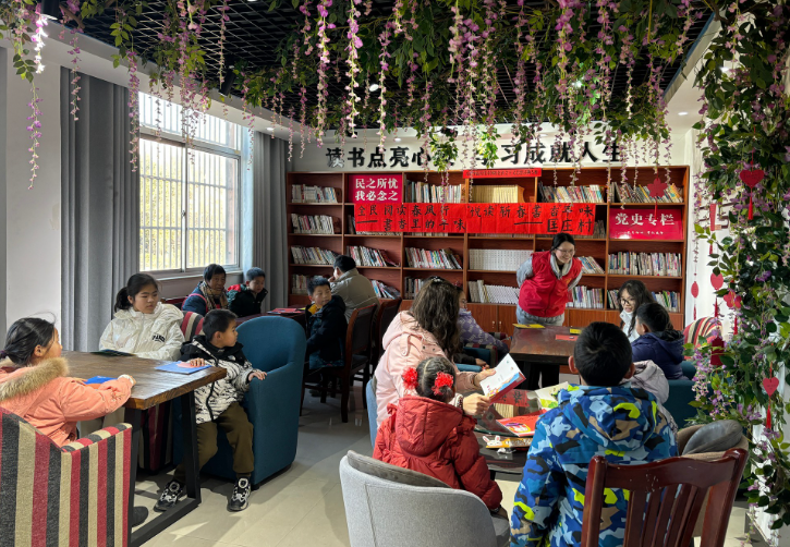 童潤書香,溫潤時(shí)光。為推動(dòng)書香村居建設(shè),讓傳統(tǒng)文化融入日常、涵養(yǎng)民風(fēng),張橋鎮(zhèn)依托農(nóng)家書屋、新時(shí)代文明實(shí)踐點(diǎn)等陣地組織開展親子閱讀,豐富青少年的內(nèi)心文化世界。1月16日,在圩港村農(nóng)家書屋里,家長和孩子們圍坐在一起,聆聽志愿領(lǐng)讀人朱樂蔚帶來的童話故事,感受閱讀帶來的樂趣。