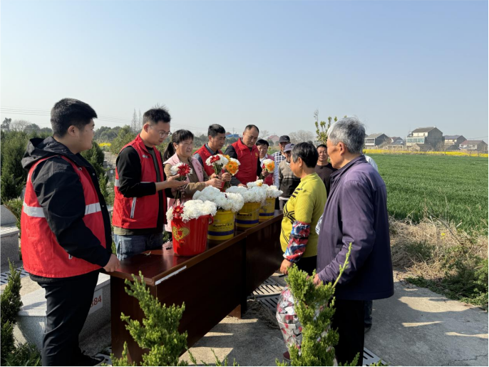 梨花風起正清明,文明追思寄深情。為深化紅色教育、倡樹文明新風、守護綠色家園,泰興市分界鎮(zhèn)組織開展“我們的節(jié)日·清明”暨民族團結活動,通過祭英烈、倡新風、護平安三大行動,引導各族群眾以文明、安全、低碳的方式寄托哀思,讓紅色基因薪火相傳,讓清明更顯“氣清景明”。 賡續(xù)紅色血脈 緬懷英烈忠魂 清明前夕,“清明祭英烈 薪火永相傳”紅色教育活動在分界鎮(zhèn)烈士陵園開展。各族兒童在烈士紀念碑前整齊列隊,鞠躬默哀,向革命先烈敬獻花圈。在“紅色課堂”換屆,學校老師張宏現場講述烽火歲月,孩子們認真聆聽,熱淚盈眶。“先烈們用生命換來今天的和平,我們要珍惜時光,為中華崛起而讀書!”學生代表楊鑫宇說。這場“行走的思政課”以體驗式教育,讓紅色信仰深植各族兒童心田。 倡導鮮花祭祀 引領文明新風 在分界鎮(zhèn)湖頭村公墓入口處,一抹抹“志愿紅”成為亮麗風景。清明節(jié)期間,湖頭村新時代文明實踐站組織開展“鮮花換紙錢 低碳寄哀思”活動,3名志愿者駐守服務點,用500余支黃白菊置換各族群眾攜帶的紙錢香燭;顒蝇F場,還設置文明祭祀展板,圖文并茂展示焚燒紙錢的危害,并發(fā)放《文明祭祀倡議書》,綠色祭掃漸成分界新風尚。