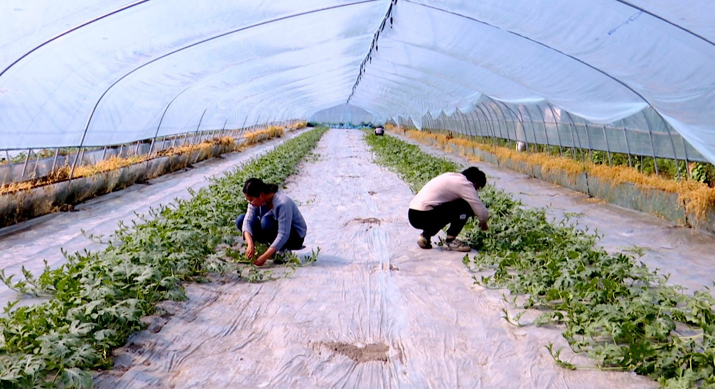 南殷村田田草莓園內(nèi),殷昶威夫婦正為西瓜整枝掐尖。“草莓剛下市,西瓜、甜瓜接茬上市,9月再種草莓,全年不斷檔。”依托近城優(yōu)勢,殷昶威種植草莓、拇指番茄等果蔬,年收入超80萬元。這種輪作模式,既提高土地利用率,又保障市場供應(yīng)。