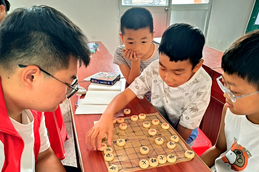 藝趣課堂,奏響夏日樂章。近日,在鎮(zhèn)前新村“青仔公益暑托服務”點的象棋課堂上,小棋手凝神對弈,在“楚河漢界”間錘煉邏輯思維;電子琴旁,志愿者耐心指導,孩子們指尖輕舞,奏出清脆悠揚的音符。“這一步該怎么走?”“這個音準了嗎?”在一問一答中,藝術與思維的種子悄然萌芽。