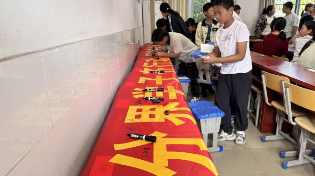 講座結(jié)束后,活動進(jìn)入宣讀《網(wǎng)絡(luò)安全倡議書》環(huán)節(jié)。學(xué)生代表何雨桐手持倡議書,以鏗鏘有力的聲音,向全體參與同學(xué)發(fā)出倡議,呼吁大家自覺遵守網(wǎng)絡(luò)法律法規(guī),樹立正確網(wǎng)絡(luò)價值觀,抵制不良網(wǎng)絡(luò)信息,保護(hù)個人信息安全,積極營造健康、文明、安全的網(wǎng)絡(luò)環(huán)境。在老師的引導(dǎo)下,初一年級的同學(xué)們鄭重地在橫幅上簽下自己的名字。筆尖落下的不僅是一個個姓名,更是同學(xué)們對踐行網(wǎng)絡(luò)安全承諾的堅定決心——承諾將所學(xué)的網(wǎng)絡(luò)安全知識運用到日常上網(wǎng)生活中,主動抵制網(wǎng)絡(luò)不良信息,守護(hù)個人信息安全,帶動身邊人共同維護(hù)健康的網(wǎng)絡(luò)環(huán)境。