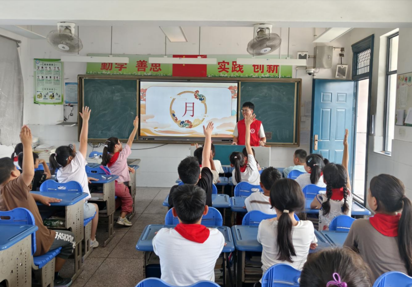 飛花令里品詩(shī)韻,少年才情競(jìng)芳華。廣陵小學(xué)的教室里,同心圓夢(mèng)志愿者正帶領(lǐng)孩子們開(kāi)展“月滿中秋·詩(shī)詞飛花令”活動(dòng)。“小時(shí)不識(shí)月,呼作白玉盤(pán)”“窗前明月光,疑是地上霜”“月落烏啼霜滿天,江楓漁火對(duì)愁眠”……孩子們爭(zhēng)相舉手搶答,一句句經(jīng)典詩(shī)詞脫口而出,現(xiàn)場(chǎng)掌聲不斷。志愿者們?yōu)榇饘?duì)的學(xué)生送上印有中秋圖案的精美書(shū)簽,鼓勵(lì)他們多讀經(jīng)典、傳承文化。倪榮輝同學(xué)興奮地說(shuō):“以前只覺(jué)得月亮是圓的,今天學(xué)了這么多‘月’的詩(shī)句,才發(fā)現(xiàn)月亮里有這么多故事!”活動(dòng)以詩(shī)為媒,讓孩子們?cè)诟?jìng)技中感受詩(shī)詞之美,厚植文化自信。