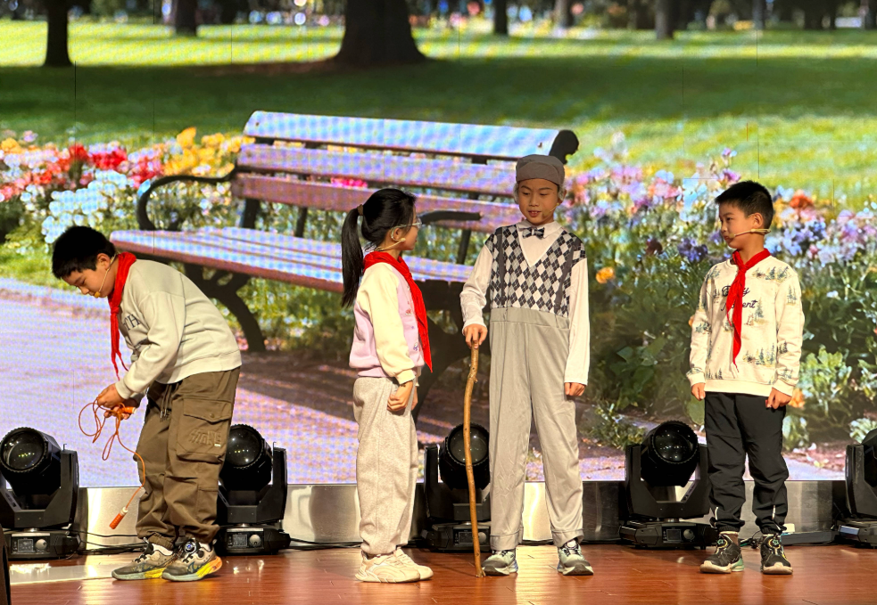 孝行當(dāng)下,情感升華凝聚共識(shí),F(xiàn)場播放的“社區(qū)尋訪”VCR,真實(shí)記錄了學(xué)生們拜訪退役老兵雍德元的動(dòng)人場景。鏡頭下,老兵深情講述革命歲月,回憶往昔崢嶸,為學(xué)生們上了一堂感人至深的沉浸式愛國主義教育課。懷著這份敬意,泰興市張橋小學(xué)的學(xué)生們莊嚴(yán)宣讀《孝心行動(dòng)倡議書》,號(hào)召全體同學(xué)以實(shí)際行動(dòng)踐行責(zé)任擔(dān)當(dāng),在“認(rèn)知—認(rèn)同—踐行”的閉環(huán)中實(shí)現(xiàn)自我教育。“九九重陽,自古寄托著對(duì)生命久長、福壽安康的美好祝愿,現(xiàn)在更成為我們感恩尊老、賡續(xù)文脈的精神紐帶,我們應(yīng)該將感動(dòng)化為行動(dòng),用實(shí)踐詮釋孝心。”主持人鞠詩睿鏗鏘有力地說。