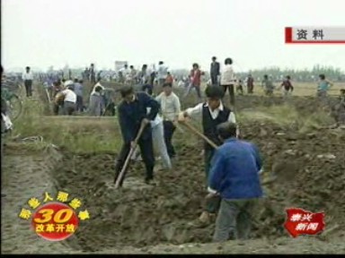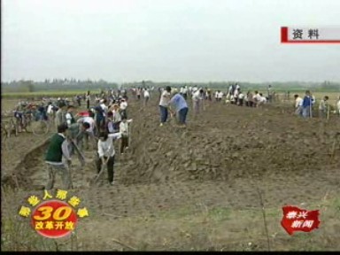 在分界鎮(zhèn)南周村黨總支書記閭?cè)鹎宓膸ьI(lǐng)下,我們來到了一塊被秸桿掩蓋的標(biāo)志碑前。撥去干秸桿,碑上隱約可見長(zhǎng)生鄉(xiāng)平田整地示范區(qū)的文字。作為12年前那場(chǎng)聲勢(shì)浩大工程的見證,長(zhǎng)生鄉(xiāng)萬畝中低產(chǎn)田改造被永久地留在了歷史的記憶之中。 徐宏瑞說:“作為市委市政府,要為老百姓辦實(shí)事,這是一個(gè)突破口和一個(gè)落腳點(diǎn)。如何改,資金從何而來,困擾著市委市政府。市委主要負(fù)責(zé)同志提出來:貸款搞低改,以糧還貸! 1996年下半年,長(zhǎng)生萬畝中低產(chǎn)田改造在市委、市政府的精心策劃、組織下,緊鑼密鼓地展開了。全鄉(xiāng)29個(gè)村自行組織,分片包干,特別在南周、東周、蔡樓等村,連片改造面積超過了4000畝。 分界鎮(zhèn)副鎮(zhèn)長(zhǎng)劉宏崗說:“為了不影響下一茬的種植季節(jié),鄉(xiāng)里集中全鄉(xiāng)各個(gè)村的勞動(dòng)力,組織到這個(gè)地方來搞萬人大會(huì)戰(zhàn),集中半個(gè)月的時(shí)間突擊平田整地! 大會(huì)戰(zhàn)所體現(xiàn)出來的凝聚力和協(xié)作精神是驚人的。長(zhǎng)生全鄉(xiāng)3萬多人口,幾乎每人都為改造出過力,有些人家甚至將親戚動(dòng)員過來參加勞動(dòng)。 原長(zhǎng)生南周七組村民潘俊杰說:“當(dāng)時(shí)群眾的積極性是高的,有的人家一家老小大都來幫著弄,都到田里來挑呀推呀挖土。” 截止2007年年底,長(zhǎng)生鄉(xiāng)共出動(dòng)勞力10萬人次,完成工程土方200萬方,新改擴(kuò)建各類橋涵閘渠等建筑物8684座,新建電站泵站27座,改造高低壓線路10公里,路道10公里,綠化55公里,投入資金達(dá)到558萬元。 昔日高垛田 今朝成糧倉(cāng)