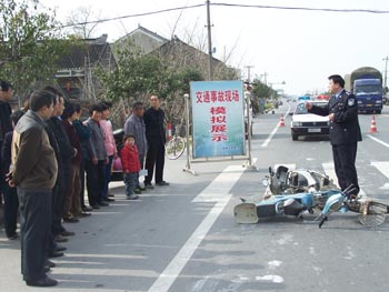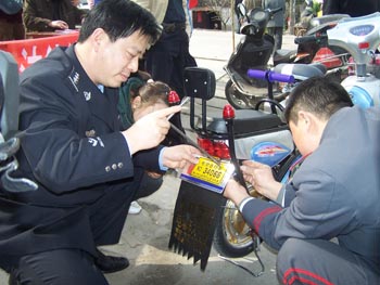 3月20日,泰興張橋鎮(zhèn)褚陳村村頭廣場好熱鬧,村上男女老少都推著自家的新電動車來“趕集”。原來,泰興公安交巡警大隊張橋中隊“志愿者服務(wù)隊”在這里正進行志愿服務(wù)活動。他們選擇轄區(qū)事故多發(fā)的村莊進行交通事故殘骸展、模擬交通事故現(xiàn)場,面對面的對群眾進行交通安全宣傳,發(fā)放“村民交通安全出行須知”,為農(nóng)戶新購的電動車辦理牌證業(yè)務(wù),受到了群眾的贊揚。(廖志鋒 黃新麗)