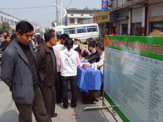 泰興市勞動保障部門組織的“創(chuàng)業(yè)就業(yè)服務(wù)大篷車”,每月至少開通一次,主要深入全市各鄉(xiāng)鎮(zhèn)免費(fèi)發(fā)布就業(yè)信息、推介創(chuàng)業(yè)項(xiàng)目、宣傳創(chuàng)業(yè)就業(yè)的優(yōu)惠政策。這次來到蔣華鎮(zhèn),帶來了800多個(gè)就業(yè)崗位招聘信息,并推介了20個(gè)創(chuàng)業(yè)項(xiàng)目。蔣華鎮(zhèn)勞動和社會保障服務(wù)所還組織本地的相關(guān)企業(yè)進(jìn)場“擺攤設(shè)點(diǎn)”,幫助返鄉(xiāng)農(nóng)民就業(yè)或再就業(yè)。