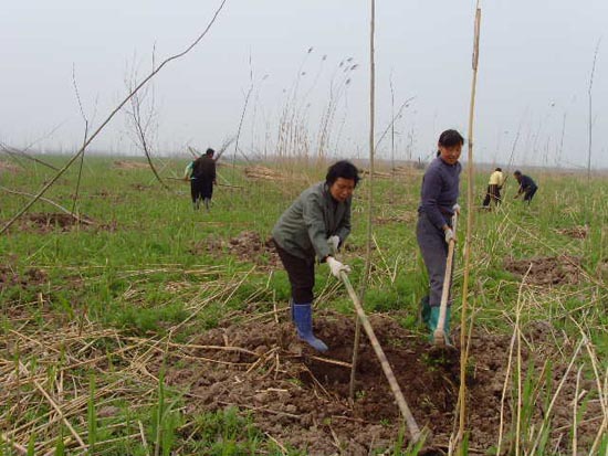 與此同時(shí),三橋村還擁有3000多畝的江心洲。過去,江心洲上遍地長(zhǎng)滿了蘆葦,每年都是承包給寶應(yīng)等地的客商砍伐,收益很低而且無法得到保證。從2003年開始,村兩委會(huì)嘗試著在江心洲上栽植了一批意楊林,長(zhǎng)勢(shì)相當(dāng)好。去年,村兩委會(huì)通過招引外地能人張勤對(duì)江心洲進(jìn)行開發(fā),今年1000多畝的意楊林已經(jīng)栽種完畢。到明年,江心洲上的意楊面積將發(fā)展到2500畝,村里直接收益可達(dá)7萬元。