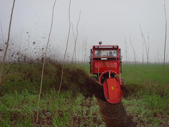 圖四為外地能人張勤正在新栽的意楊林內(nèi)開挖降水溝,確保江潮過后,林地不發(fā)生漬害。