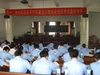圖為泰興工商干部考試場(chǎng)景 今年是第二輪基層站所作風(fēng)建設(shè)“鞏固提高年”,為檢驗(yàn)第二階段“強(qiáng)化教育階段”的教育成果,促進(jìn)全系統(tǒng)12個(gè)基層分局服務(wù)大提升,執(zhí)法水平大提高,更好地服務(wù)地方經(jīng)濟(jì)發(fā)展, |