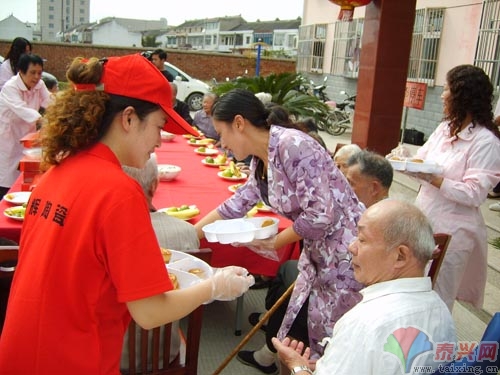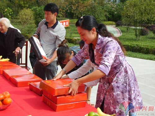 9月28日下午,泰興大王椰板材店趙娟總經(jīng)理為大慶老人院送上了月餅、水果等物品,看望在院中過國慶、中秋的老人。并和志愿者們一起為老人們表演了節(jié)目。